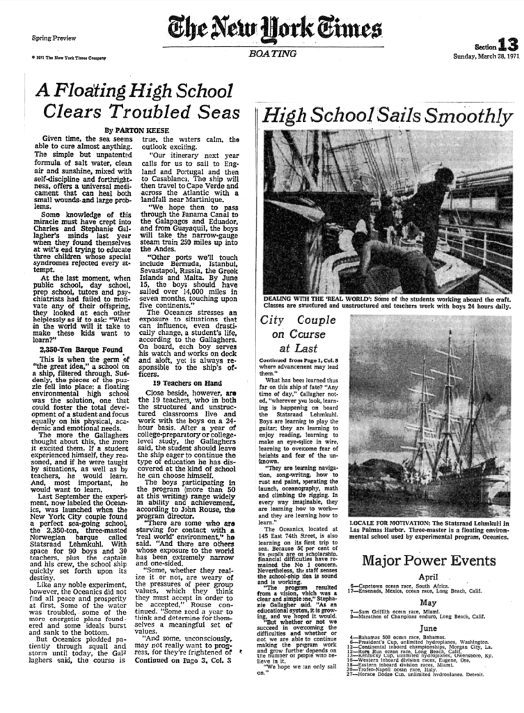 New York Times article after the first year of the Oceanics School.